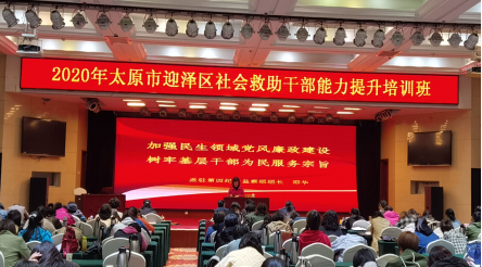 为进一步加强社会救助工作,提升救助工作管理服务水平,2020年10月14日,太原市迎泽区社会救助干部能力提升培训班在交通大厦附楼会议中心二层迎泽厅举行,全区社区负责人及基层低保专员共计255人参加了培训。乐鱼app客户端下载作为承办协助单位,为大会提供了全程的组织服务工作。