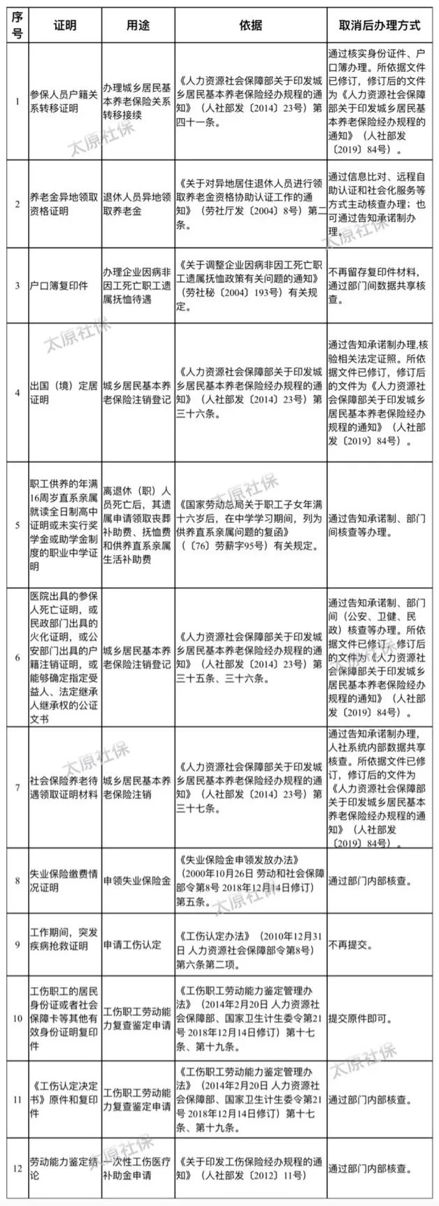 社保中心决定取消12项由规范性文件设定的证明材料