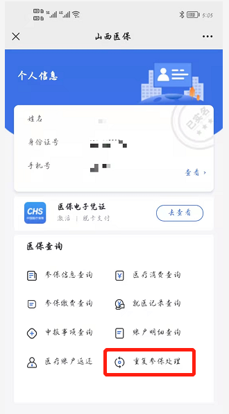 第二步: 从“个人参保”页面选择“重复参保处理”。