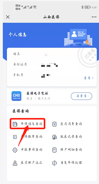 第七步:重新登录“个人信息”,进入“参保信息查询”进行验证。