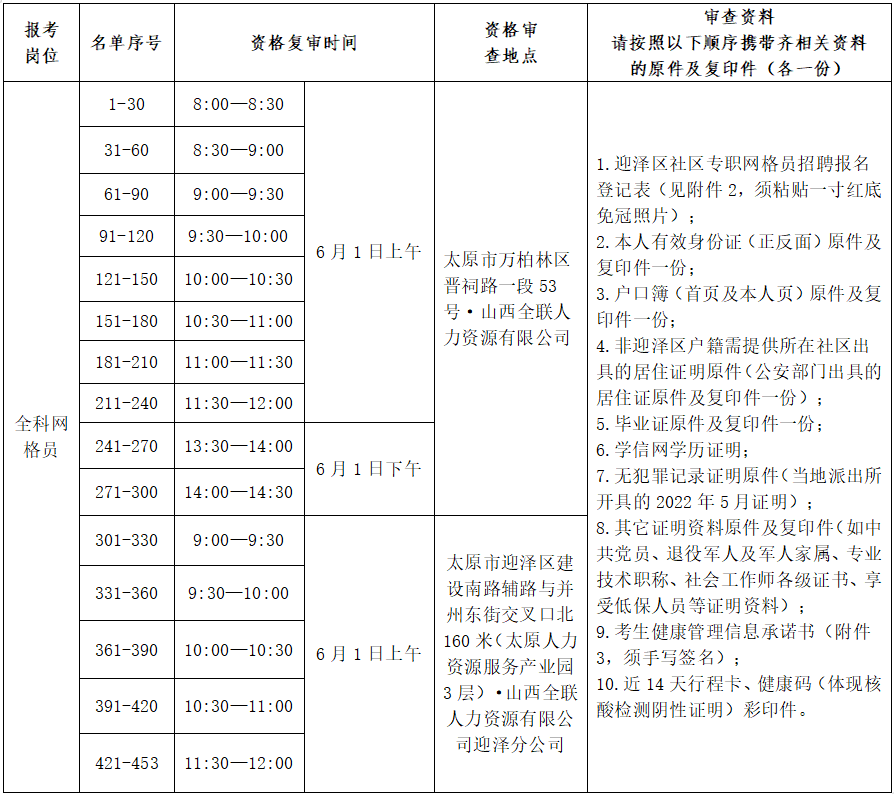 《迎泽区社区专职网格员资格复审人员名单》详见附件1。