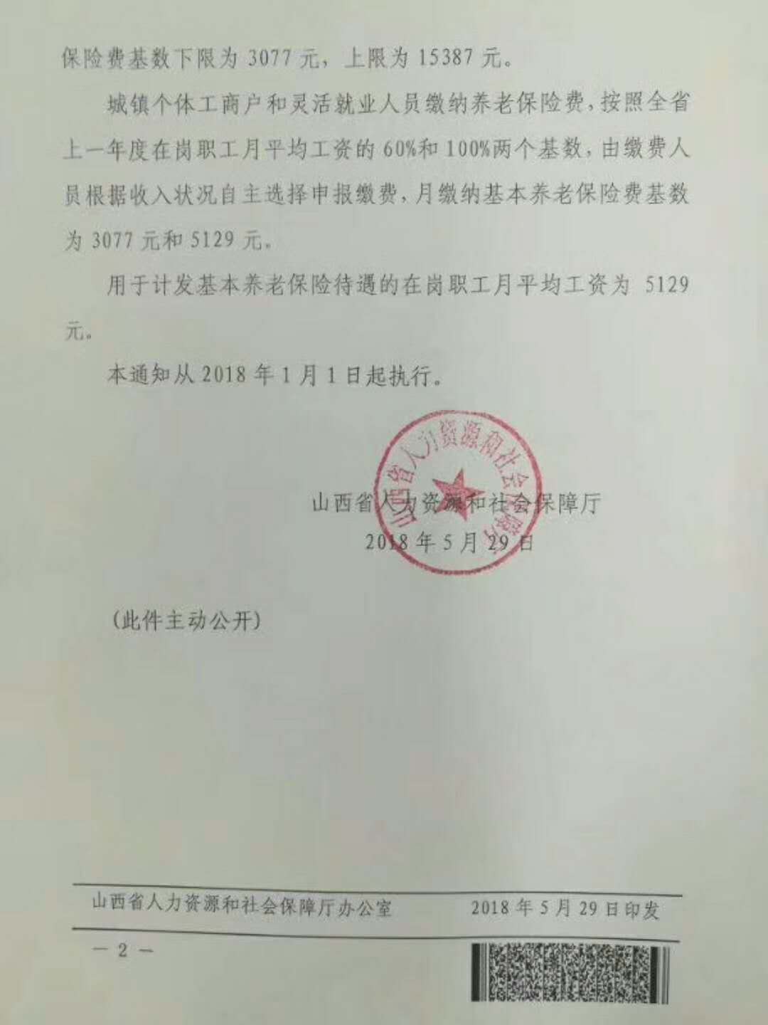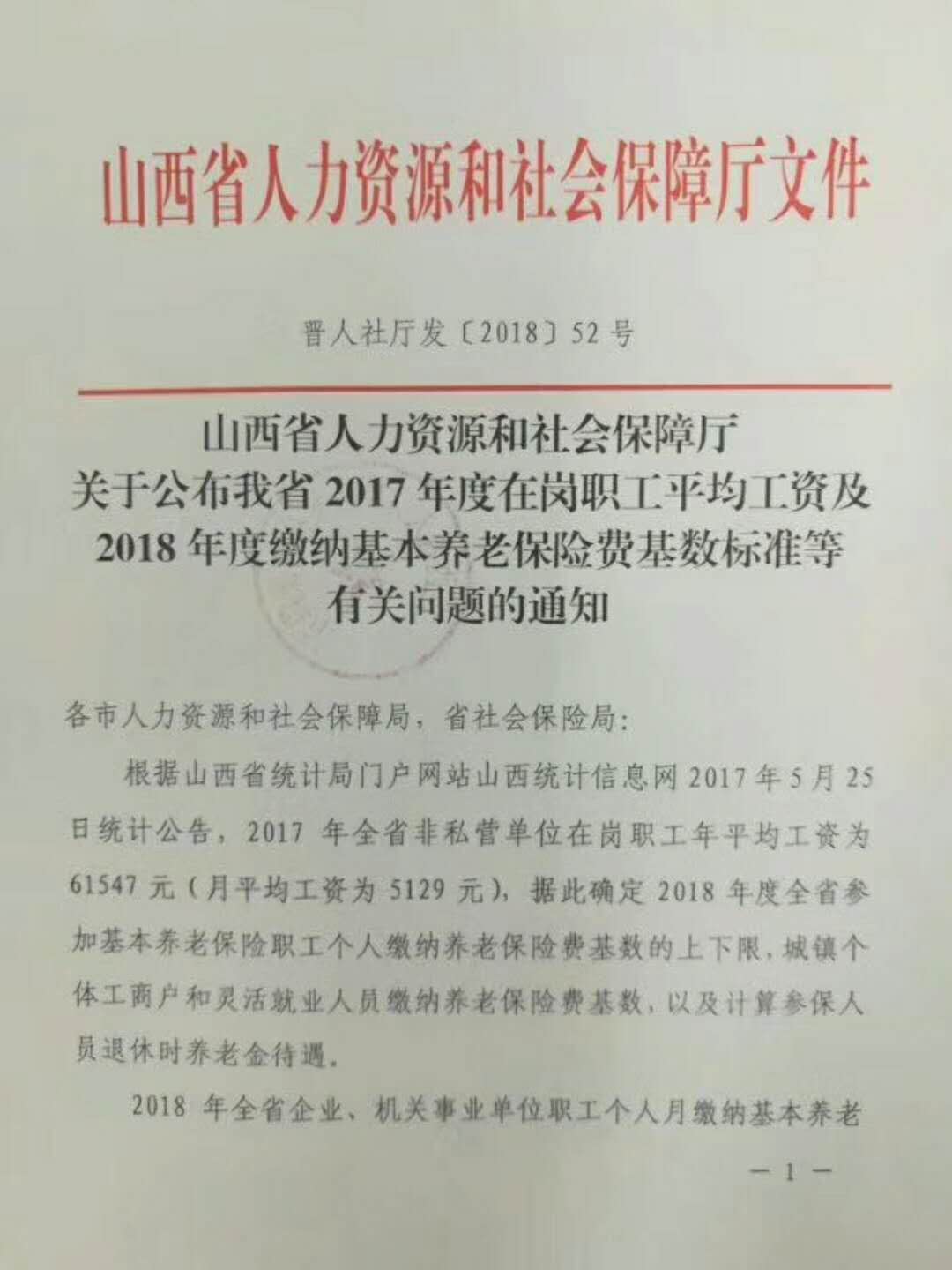 山西省人力资源和社会保障厅关于公布我省2017年度在岗职工平均工资及2018年度缴纳基本养老保险费基数标准等有关问题的通知