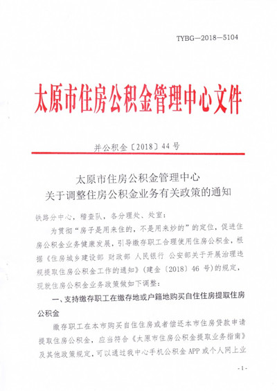 图片来自:太原市住房公积金管理中心办公室印发 并公积金[2018]44号文件